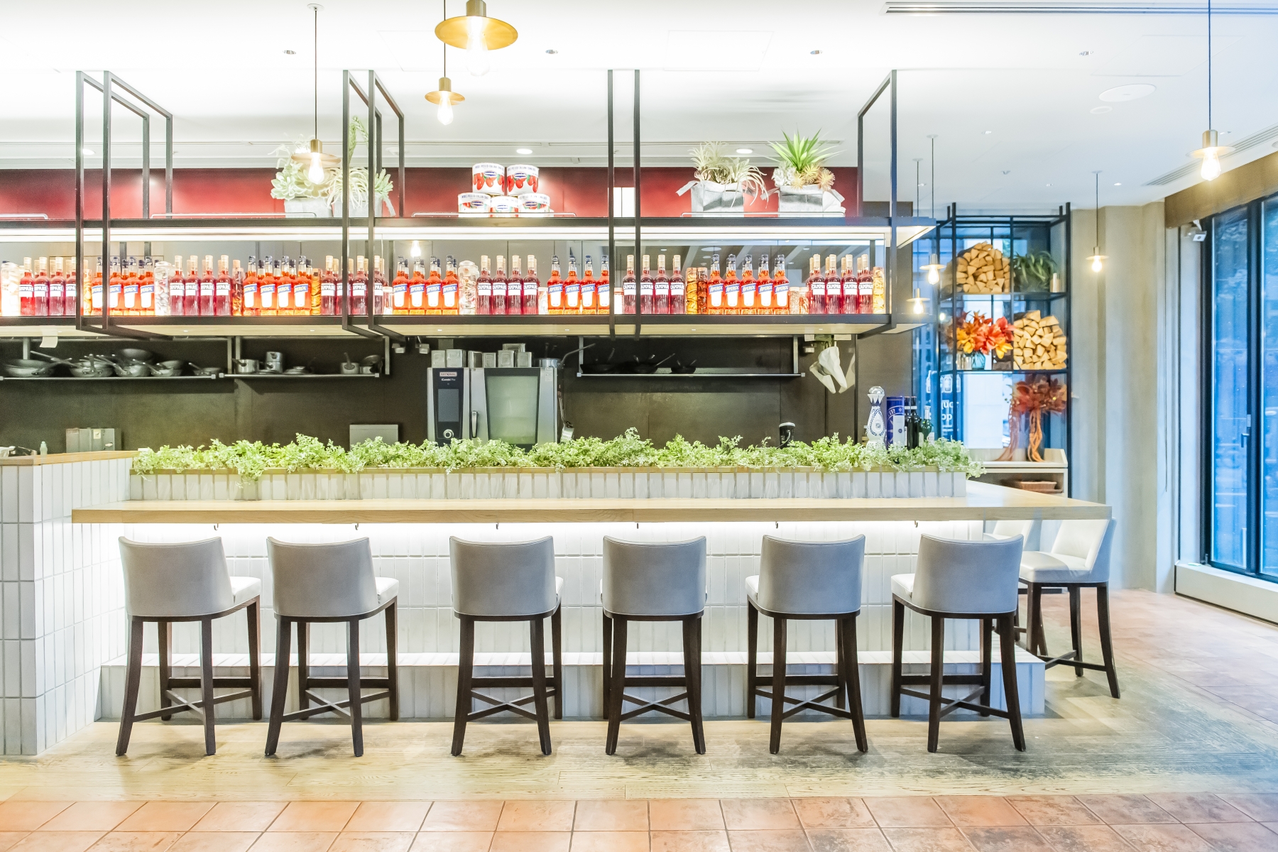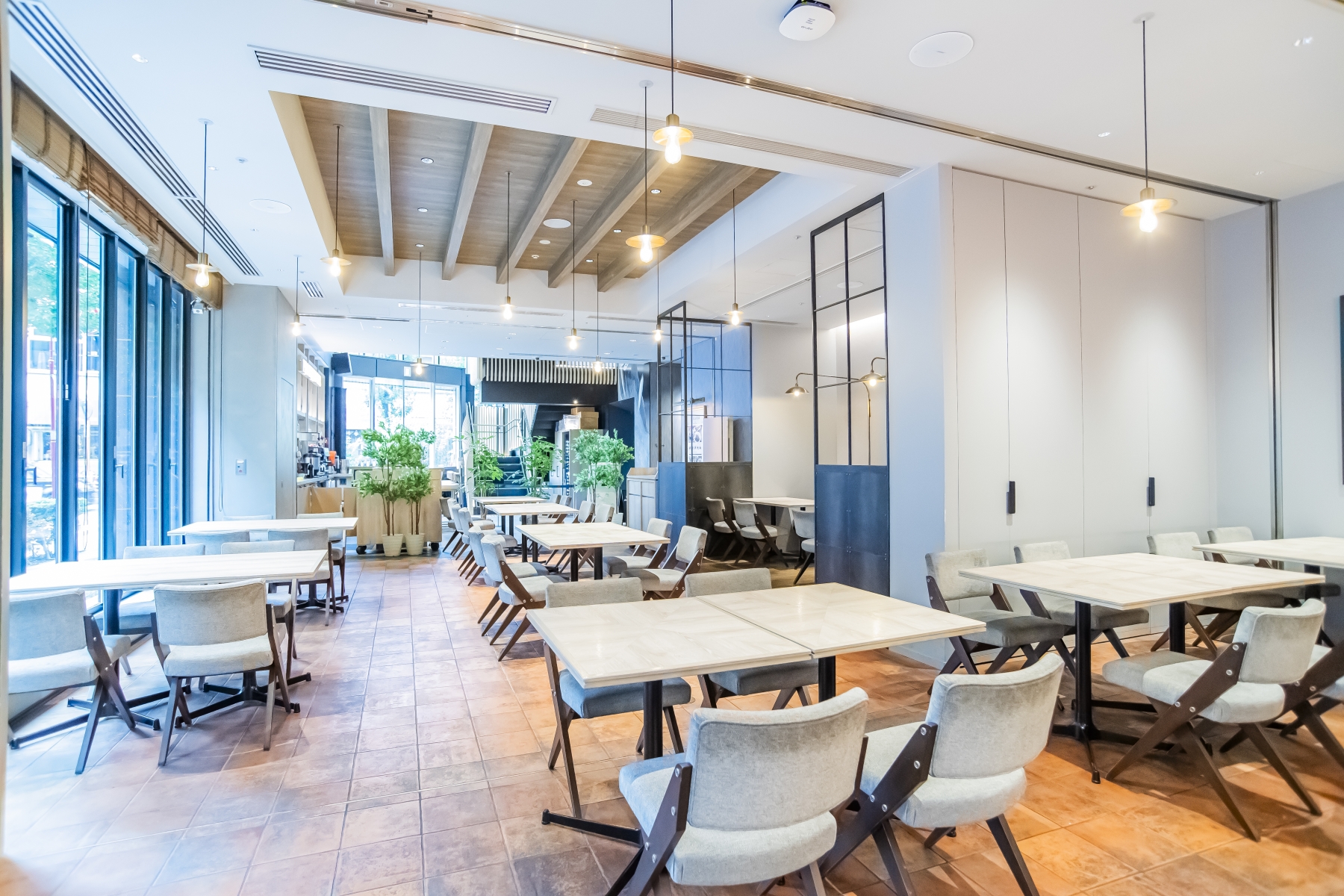 銀座コリドー街にある、ザ ロイヤルパーク キャンバス 銀座コリドー1階、大きな窓が特徴の明るい店舗。