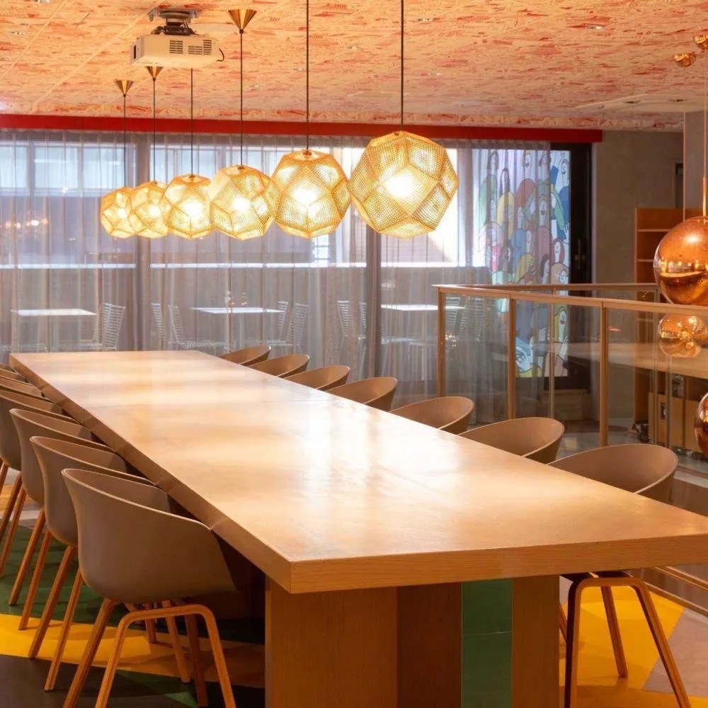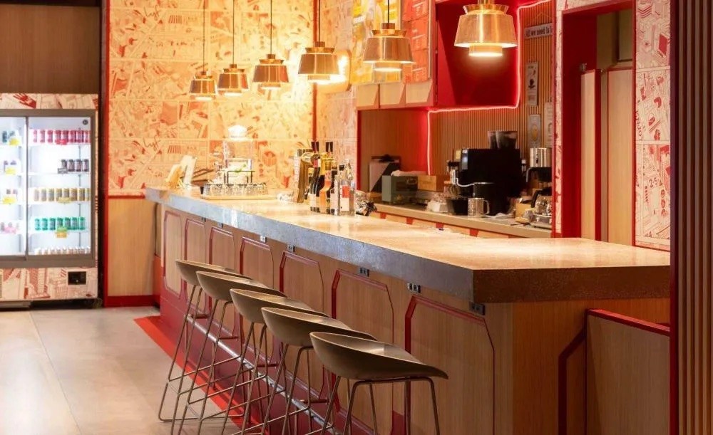 ホテルのフロントやワークスペースと一体になっており、開放的でフォトジェニックな空間が広がります。