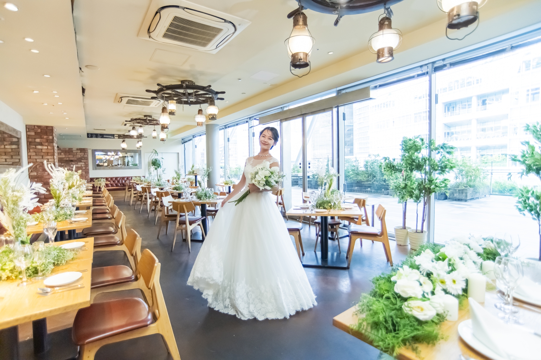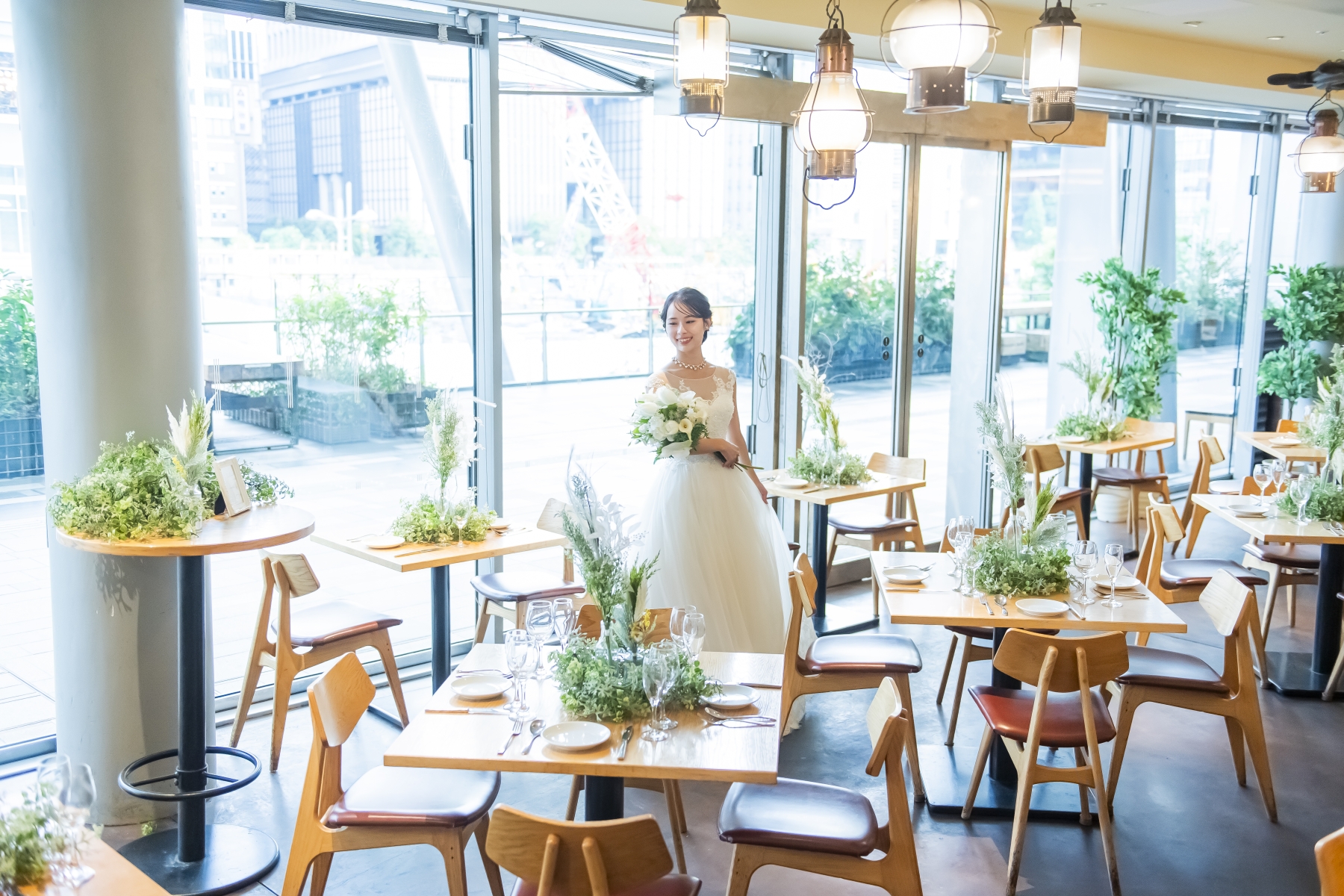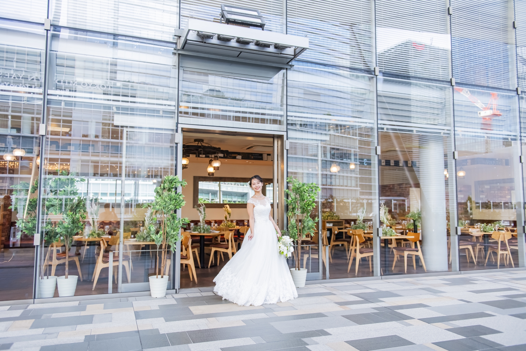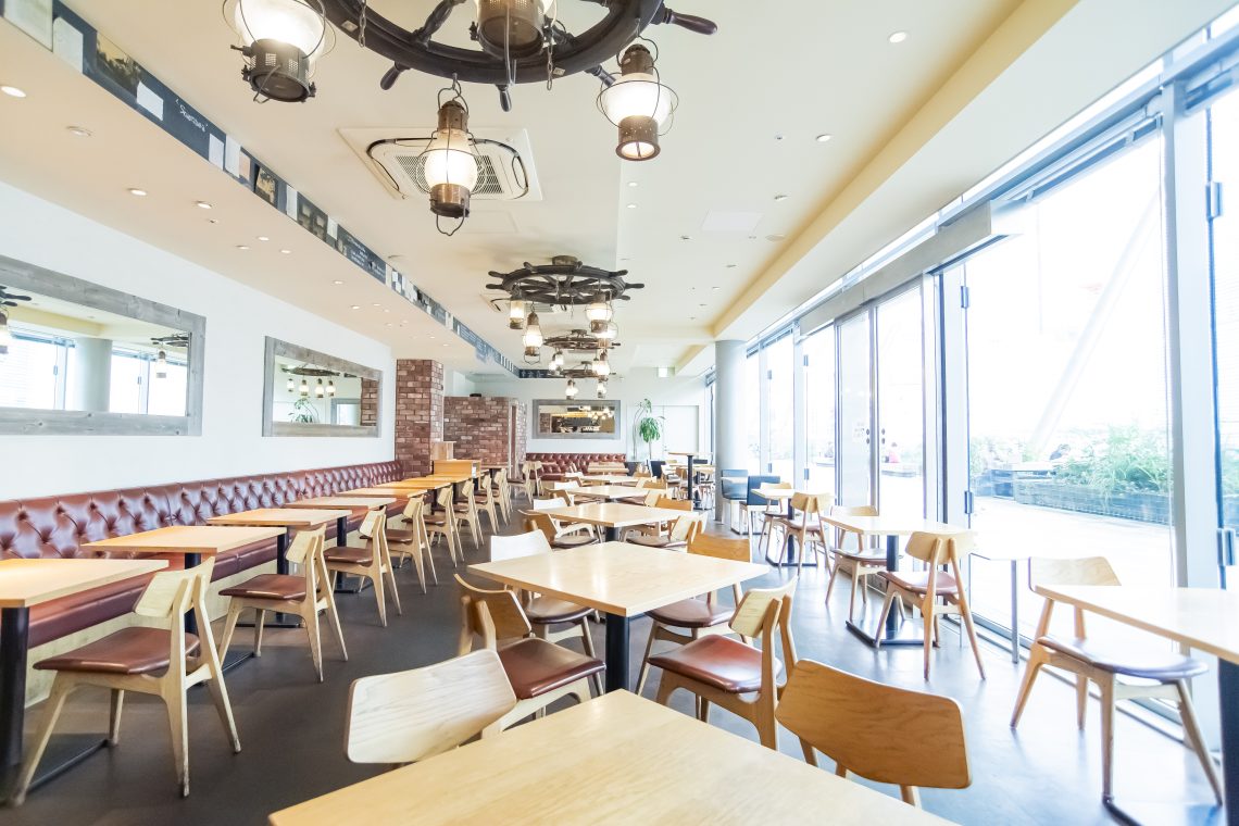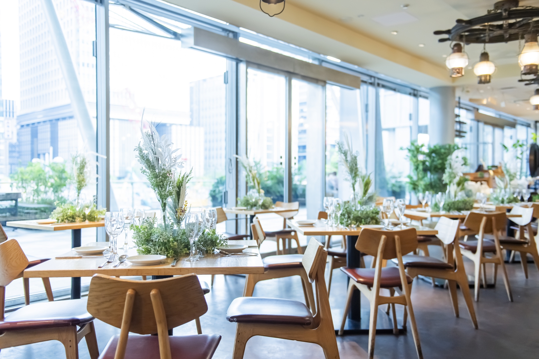 東京駅直結の「グランルーフ」2階。テラスに面したガラス張りのオープン空間